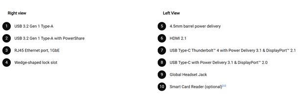 - Thunderbolt 4 (USB Type-C) for high-speed data transfer, docking, and charging.